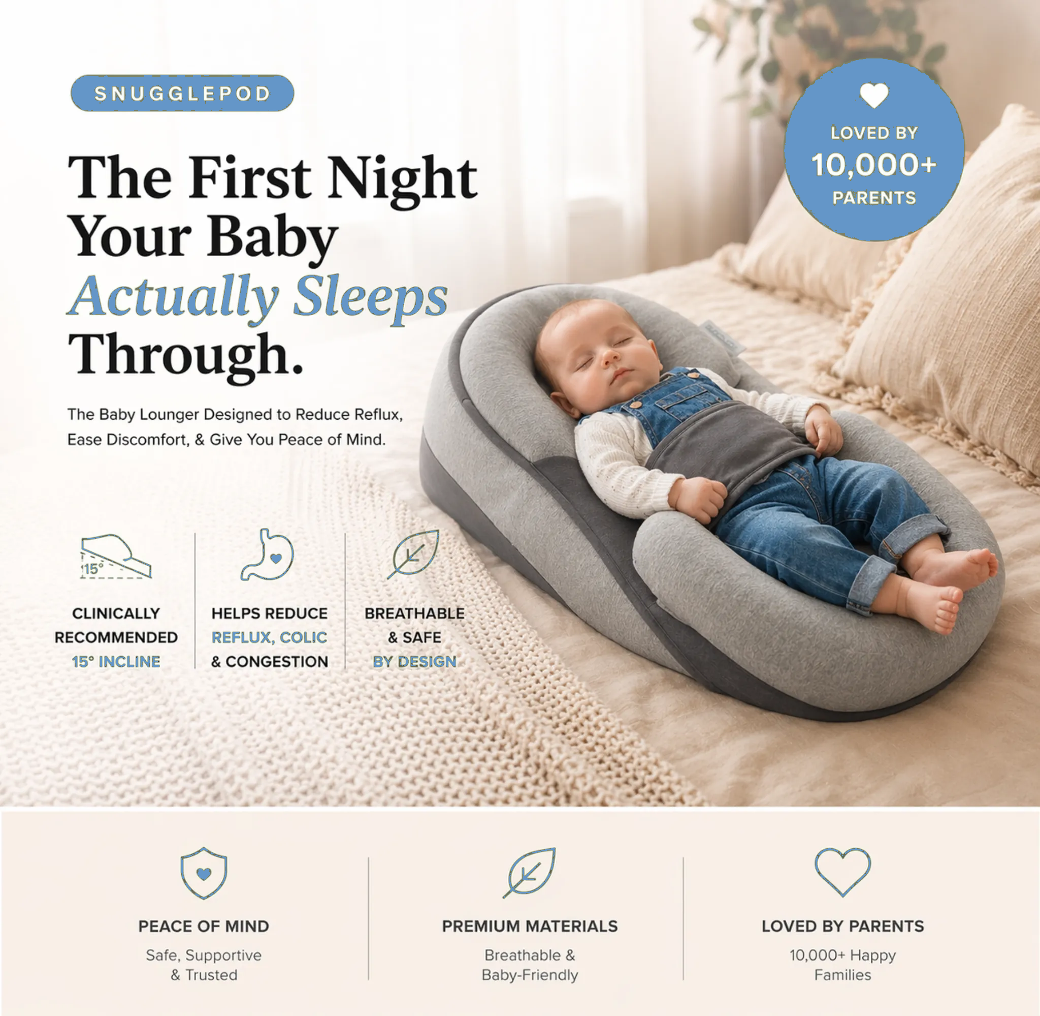 Absolutely! SnugglePod™ is crafted with the safest, snuggliest materials, designed to cradle your baby in perfect comfort and security. You can rest easy knowing your baby is sleeping soundly and safely, every single night.